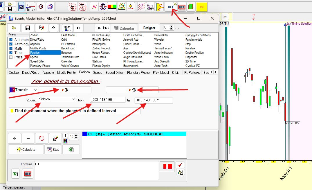 2. Come across this " https://www.youtube.com/watch?v=F0V-P-uLF7A " video on Pushya nakshtra as per video nifty gives reversal around this time. Pushya nakshtra is when Moon is in Cancer from 3° 20' to 16° 40' below are the step to use this on TS. Uee ULE to as below
