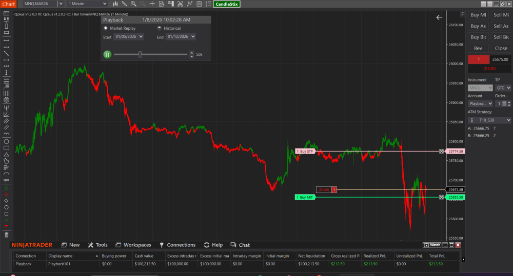2. Its perfectly working, Tried to run it on MNQ 1 Min Playback 8:30 to 11:30 from Jan 5th to 13th,.. here is the screen, now we need to find template/settings for it.