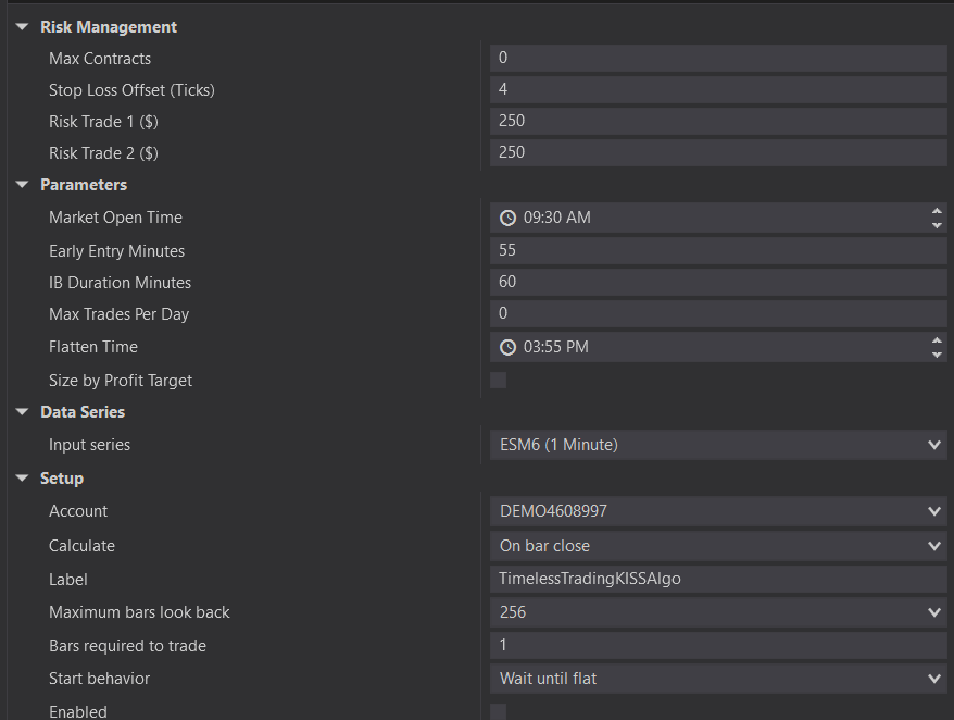 2. Are there any recommended bar type / timeframe settings required for this ALGO. I tried with 1 and 5 min chart and results are really bad. Also nothing from strategy is clear on target finding and TP/SL placement
