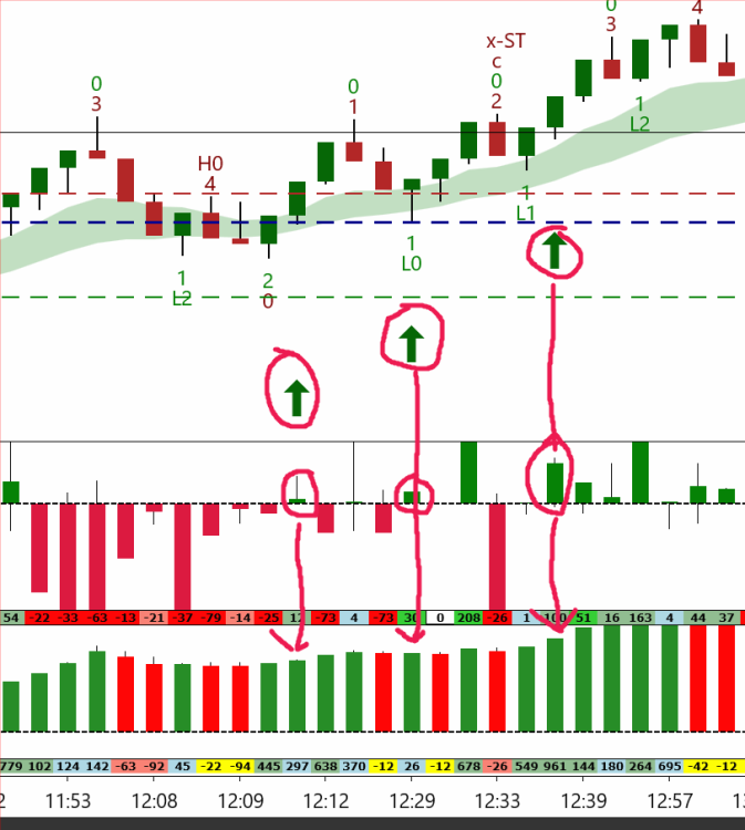 Here is how I use this Price Action Indicator with Tas . Look at the arrows also the indicator at the bottom is from ARC - Tick Cumlative , learn it ,this guy who had his own channel quit teaching years ago ( I guess he was tired of the crap) but anyway here is his channel and all software is somewhere on this site ...... ARC Neurostreet had this tick cumlative in the package , very informative . I use Wise, Tas and Neurostreet tick cumlative ....Very good signals on Nasdaq and ES .....6 points