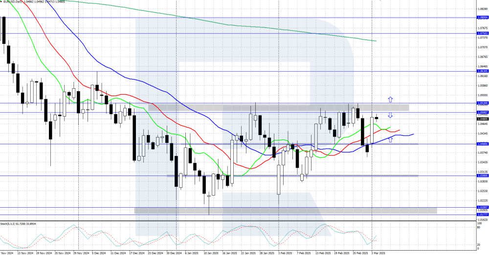 EURUSD rallies: parity is forgotten The EURUSD pair is hovering around 1.0806 on Thursday, with the euro reaching the high seen in early November 2024. Find out more in our EURUSD analysis for 6 March 2025. EURUSD forecast: key trading points The EURUSD pair hit highs observed in early November 2024 Germany’s plans and the general positive sentiment about the eurozone outlook support the euro EURUSD forecast for 6 March 2025: 1.0820 Fundamental analysis The EURUSD rate rose to 1.0806, which was last seen by the market on 8 November 2024. The US dollar is under pressure from a strong euro and evolving consequences of President Donald Trump’s tariff policy. New US trade tariffs on Canada, China, and Mexico have provoked retaliatory measures from these countries. This stance raises concerns about escalating trade wars, which could slow down US economic growth. The market is now awaiting fresh US employment statistics. The ADP data showed that the US private sector added just 77 thousand jobs in February, the smallest gain in seven months. The main reports are due on Friday. The euro is rising as the 500 billion euro infrastructure fund proposed by Germany and plans to reconsider borrowing rules have improved the eurozone outlook. The ECB meeting is scheduled for today, with the regulator likely to lower the interest rate to 2.65% per annum from the current 2.90%. RoboForex Market Analysis & Forex Forecasts Attention! Forecasts presented in this section only reflect the author’s private opinion and should not be considered as guidance for trading. RoboForex bears no responsibility for trading results based on trading recommendations described in these analytical reviews. Sincerely, The RoboForex Team- 348 replies