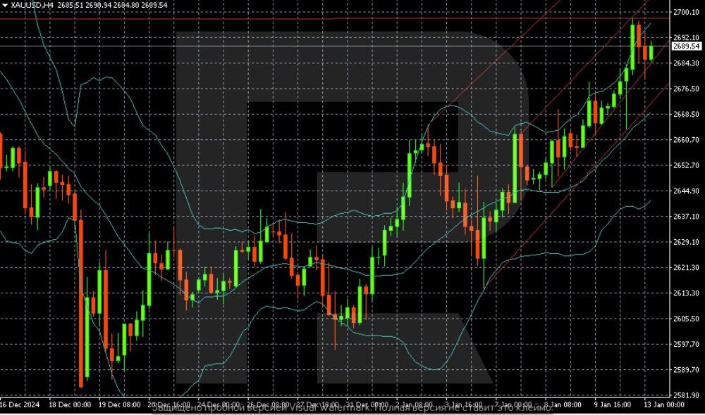 Gold (XAUUSD) is rising amid demand: the market needs safe-haven assets Gold prices start the week at around 2,690 USD. Rising global risks are prompting investors to seek protection. Find out more in our analysis for 13 January 2025. GBPUSD technical analysis On the H4 chart, the primary near-term target for Gold (XAUUSD) is 2,700 USD. This level could be achieved if prices consolidate above 2,693 USD, with a further growth target set at 2,710 USD. Gold prices may continue to rise as demand for safe-haven assets strengthens. Read more - Gold Forecast Attention! Forecasts presented in this section only reflect the author’s private opinion and should not be considered as guidance for trading. RoboForex bears no responsibility for trading results based on trading recommendations described in these analytical reviews. Sincerely, The RoboForex Team -