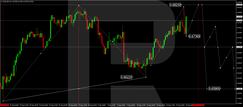 AUDUSD maintains its upward momentum The Federal Reserve interest rate change and stabilising unemployment in Australia supported the Australian dollar. Find out more in our analysis for 19 September 2024. AUDUSD technical analysis The AUDUSD H4 chart shows that the market has pushed the price to 0.6819 on the fundamental background. The price has corrected towards 0.6737 today, 19 September 2024. Following the correction, a growth wave structure is forming, aiming for 0.6825 and potentially continuing towards 0.6855. The US interest rate cut and the AUDUSD technical analysis in today’s AUDUSD forecast suggest that the growth wave could continue towards the 0.6825 and 0.6855 levels. Read more - AUDUSD Forecast Attention! Forecasts presented in this section only reflect the author’s private opinion and should not be considered as guidance for trading. RoboForex bears no responsibility for trading results based on trading recommendations described in these analytical reviews. Sincerely, The RoboForex Team -