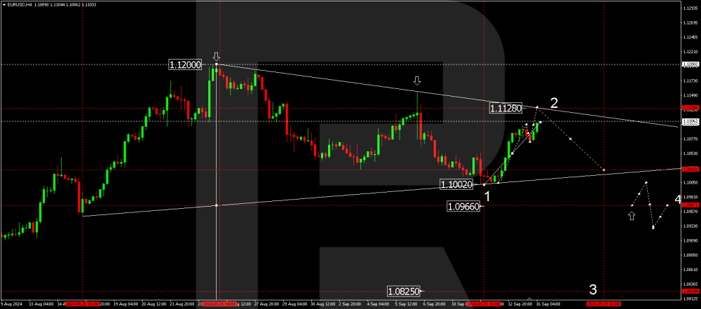 EURUSD rose: the Fed must be decisive The EURUSD pair has been rising for the third consecutive trading day. Investors are awaiting a 50-basis-point Federal Reserve interest rate cut. Find out more in our analysis for 16 September 2024. EURUSD technical analysis The EURUSD H4 chart shows that the market is forming a consolidation range around 1.1086. The market extended the range down to 1.1073 and up to 1.1104. The price could decline to 1.1055 today, 16 September 2024. After reaching this level, it might rise to 1.1128. The EURUSD pair strengthened its position, with further volatility expected amid the September Federal Reserve meeting. Read more - EURUSD Forecast Attention! Forecasts presented in this section only reflect the author’s private opinion and should not be considered as guidance for trading. RoboForex bears no responsibility for trading results based on trading recommendations described in these analytical reviews. Sincerely, The RoboForex Team -