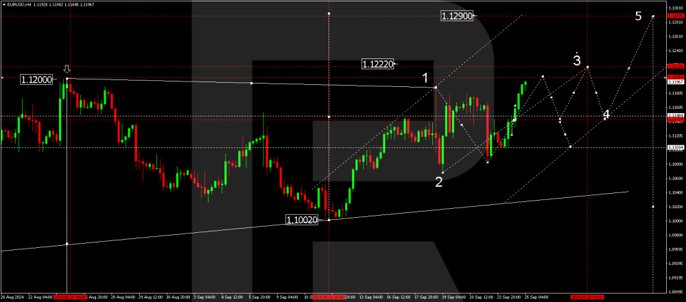 EURUSD analysis: weak economic data from Europe limits the pair’s growth The EURUSD rate is correcting after testing a four-week high. Read more in our detailed EURUSD analysis for 25 September 2024, including key signals and market outlook. EURUSD technical analysis On the H4 chart, EURUSD broke through the 1.1180 level and continues its upward trajectory towards 1.1222, which represents a local target. Based on the technical EURUSD outlook for today, 25 September 2024, we anticipate a potential correction to 1.1144 after reaching this target. EURUSD’s growth, driven by Fed rate cut expectations, could be limited by weak European economic data, which has heightened fears of a potential economic slowdown. Read more - EURUSD Forecast Attention! Forecasts presented in this section only reflect the author’s private opinion and should not be considered as guidance for trading. RoboForex bears no responsibility for trading results based on trading recommendations described in these analytical reviews. Sincerely, The RoboForex Team -