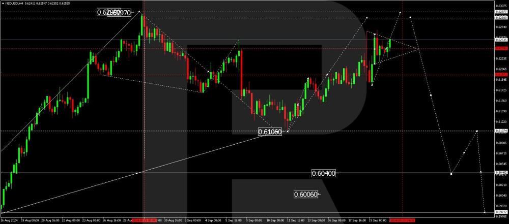 NZDUSD analysis: the market demonstrates risk appetite The NZDUSD pair continues to rise for the third consecutive day, driven by a weaker US dollar and positive risk sentiment. Below is our detailed NZDUSD forecast and analysis for 20 September 2024. NZDUSD technical analysis From a technical perspective, the NZDUSD pair is forming a consolidation range around the 0.6239 level on the H4 chart. Today's outlook for NZDUSD suggests the potential for an upside extension towards the 0.6262 level. The NZDUSD pair continues steadily climbing as investors show growing interest in risk. Read more - NZDUSD Forecast Attention! Forecasts presented in this section only reflect the author’s private opinion and should not be considered as guidance for trading. RoboForex bears no responsibility for trading results based on trading recommendations described in these analytical reviews. Sincerely, The RoboForex Team -
