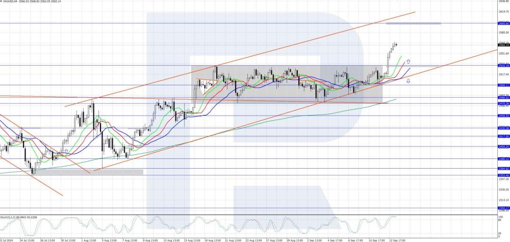 Gold (XAUUSD) is rising rapidly, reaching a new all-time high of 2,532 USD XAUUSD price exited a sideways range yesterday, subsequently surpassing an all-time high of 2,532 USD. Gold may continue its ascent. Find out more in our XAUUSD analysis for today, 13 September 2024. XAUUSD technical analysis The XAUUSD H4 chart shows a sideways price range, with boundaries at 2,532 USD and 2,470 USD. Following the release of US inflation data, gold prices rose and broke above the range’s upper boundary, indicating the potential for further upward movement. Gold prices are rising steadily, reaching an all-time high of 2,532 USD after the release of weaker-than-expected US inflation data. Read more - XAUUSD Forecast Attention! Forecasts presented in this section only reflect the author’s private opinion and should not be considered as guidance for trading. RoboForex bears no responsibility for trading results based on trading recommendations described in these analytical reviews. Sincerely, The RoboForex Team -