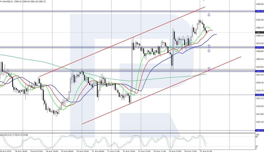 Gold (XAUUSD) rises to the 3,400 USD area XAUUSD prices continue to strengthen, climbing to the 3,400 USD area amid dollar weakness driven by US President Trump’s pressure on the Fed. Discover more in our analysis for 27 August 2025. XAUUSD technical analysis XAUUSD prices are on the rise after rebounding from the 3,300 USD area. The Alligator indicator has turned upwards, confirming potential continuation of the uptrend after a minor correction. Gold confidently rose to the 3,400 USD area amid ongoing dollar weakness. Read more - Gold Forecast Attention! Forecasts presented in this section only reflect the author’s private opinion and should not be considered as guidance for trading. RoboForex bears no responsibility for trading results based on trading recommendations described in these analytical reviews. Sincerely, The RoboForex Team -