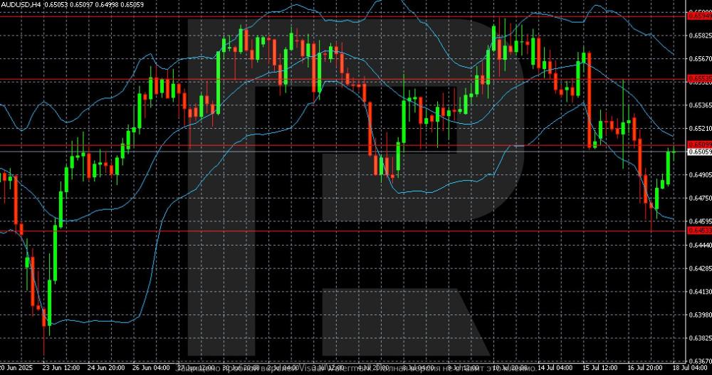 AUDUSD rises, but closes the week under pressure The AUDUSD pair climbed to 0.6505. A sharp rally in iron ore prices has become a key support factor. Discover more in our analysis for 18 July 2025. AUDUSD technical analysis On the H4 chart, the AUDUSD pair is testing local resistance at 0.6510. The upward move began from the 0.6453 low, where the price found support after a sell-off. The AUDUSD pair has stabilised and may resume gains if the market focuses on supportive factors. Read more - AUDUSD Forecast Attention! Forecasts presented in this section only reflect the author’s private opinion and should not be considered as guidance for trading. RoboForex bears no responsibility for trading results based on trading recommendations described in these analytical reviews. Sincerely, The RoboForex Team -