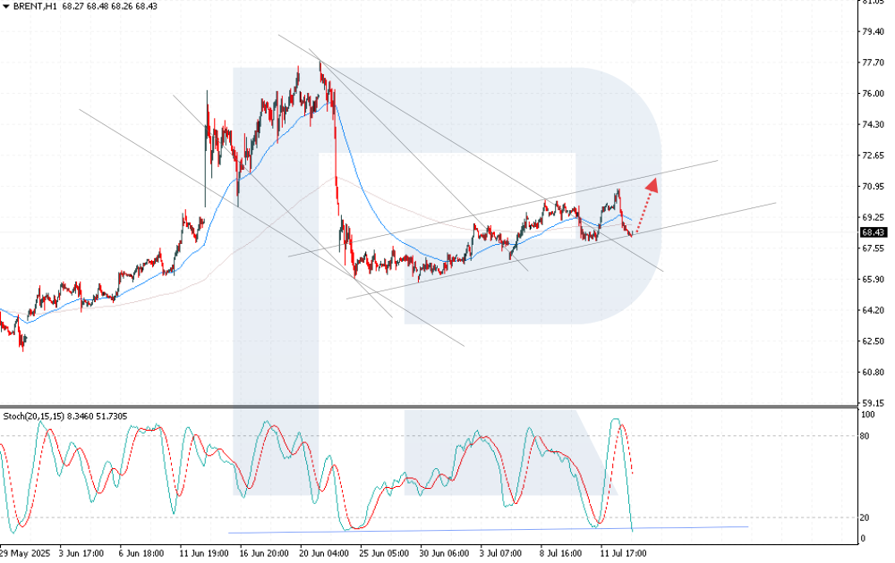 Brent prices on the edge: OPEC+ floods the market Brent quotes may regain ground and test the resistance level around the 70.70 USD mark. Discover more in our analysis for 22 July 2025. Brent technical analysis On the H4 chart, Brent prices tested the lower Bollinger Band and formed a Hammer reversal pattern. Having partially fulfilled the signal, quotes are now undergoing a correction. The Brent price forecast for 22 July 2025 suggests a growth target at 70.70 USD. A breakout above the resistance level would open the door to a stronger upward wave. Brent prices are testing the lower boundary of the ascending channel and may be gearing up for another bullish wave amid geopolitical tensions. Read more - Brent Forecast Attention! Forecasts presented in this section only reflect the author’s private opinion and should not be considered as guidance for trading. RoboForex bears no responsibility for trading results based on trading recommendations described in these analytical reviews. Sincerely, The RoboForex Team -