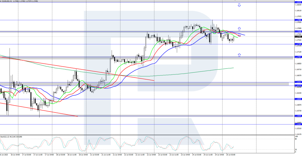 EURUSD declines after ECB decision The EURUSD rate corrected towards the 1.1730 area following the ECB's decision to keep interest rates unchanged. The market awaits the outcome of trade agreement negotiations between the US and the EU. Find out more in our analysis for 25 July 2025. EURUSD technical analysis On the H4 chart, EURUSD is undergoing a downward correction, falling this morning to the 1.1730 area, with further decline towards the 1.1700 support level possible. The daily trend for the pair remains upward, so after the correction ends, the rally may continue. The EURUSD pair corrected to the 1.1730 area following the ECB’s decision to leave rates unchanged. Read more - EURUSD Forecast Attention! Forecasts presented in this section only reflect the author’s private opinion and should not be considered as guidance for trading. RoboForex bears no responsibility for trading results based on trading recommendations described in these analytical reviews. Sincerely, The RoboForex Team -