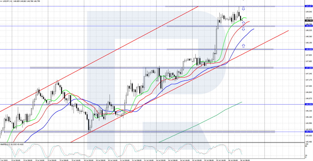 USDJPY in the eye of the storm, yen loses balance As Japan awaits the upper house elections, the USDJPY pair may continue its upward movement towards 149.60. Find out more in our analysis for 18 July 2025. USDJPY forecast: key trading points Nationwide core Consumer Price Index in Japan: previously at -3.7%, currently at -3.3% Yen awaits upper house elections USDJPY forecast for 18 July 2025: 149.60 Fundamental analysis The USDJPY fundamental analysis for 18 July 2025 shows that the pair remains in an upward channel, having consolidated near the 148.60 level. Strong macroeconomic data from the US and political uncertainty in Japan continue to pressure the yen. US retail sales reports and a drop in jobless claims further support the dollar – both as a reflection of domestic economic resilience and as a safe-haven asset. Expectations for a near-term Federal Reserve rate cut have weakened. On the Japanese side, the market is pricing in risks related to the upcoming upper house parliamentary elections. A decline in the core CPI and growing political pressure on the current administration are adding to USDJPY volatility. RoboForex Market Analysis & Forex Forecasts Attention! Forecasts presented in this section only reflect the author’s private opinion and should not be considered as guidance for trading. RoboForex bears no responsibility for trading results based on trading recommendations described in these analytical reviews. Sincerely, The RoboForex Team- 348 replies