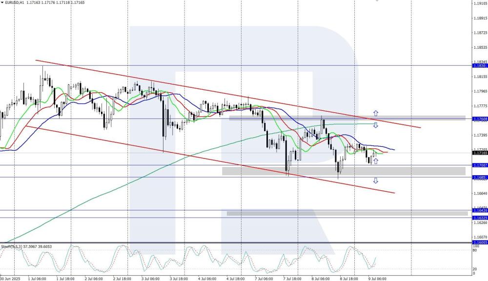 EURUSD: the pair soared above 1.1700 ahead of the FOMC minutes EURUSD rate is rising, climbing above 1.1700 amid expectations of the FOMC minutes publication, which may hint at an imminent rate cut. Details – in our analysis for 9 July 2025. EURUSD technical analysis On the H4 chart, EURUSD quotes show a local upward reversal, rising above the 1.1700 mark. The daily trend for the pair is upward, confirmed by the rising Alligator indicator. It is possible that the downward correction is already ending, and a new upward impulse may follow. EURUSD quotes are moderately rising, climbing above the 1.1700 mark on information about possible agreements on reducing trade tariffs between the US and the EU. Read more - EURUSD Forecast Attention! Forecasts presented in this section only reflect the author’s private opinion and should not be considered as guidance for trading. RoboForex bears no responsibility for trading results based on trading recommendations described in these analytical reviews. Sincerely, The RoboForex Team -