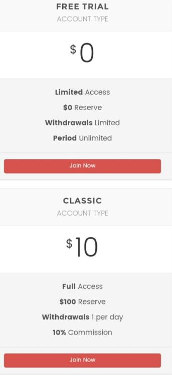 There are 5 different account's types: Free Trial, Classic, Silver, Gold & Platinum. See more info below.